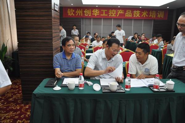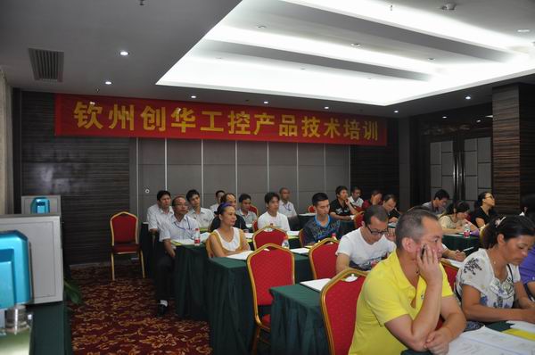 2012年8月19日至23日,欽州市創(chuàng)華工控設(shè)備有限公司主辦的“創(chuàng)華工控產(chǎn)品技術(shù)培訓(xùn)”在欽州金灣國(guó)際大酒店成功舉行。培訓(xùn)得到了全國(guó)眾多糖廠的大力支持與幫助,來(lái)自各糖廠的車間負(fù)責(zé)人、儀表工程師及創(chuàng)華工控技術(shù)人員等40多人參加了培訓(xùn)。