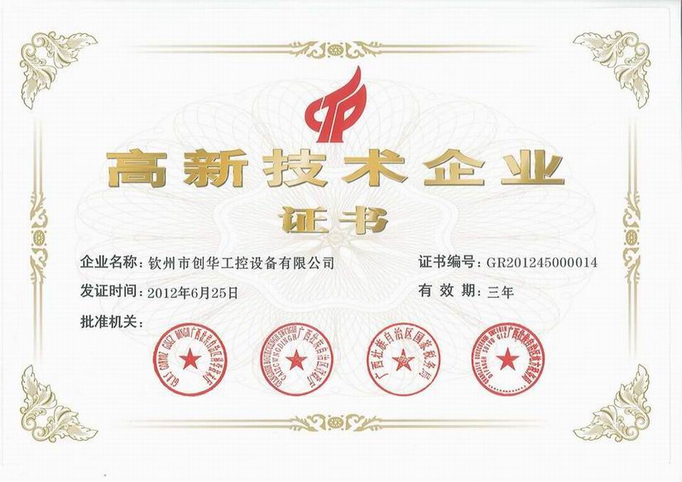 “創(chuàng)華工控”榮獲高新技術企業(yè)認定